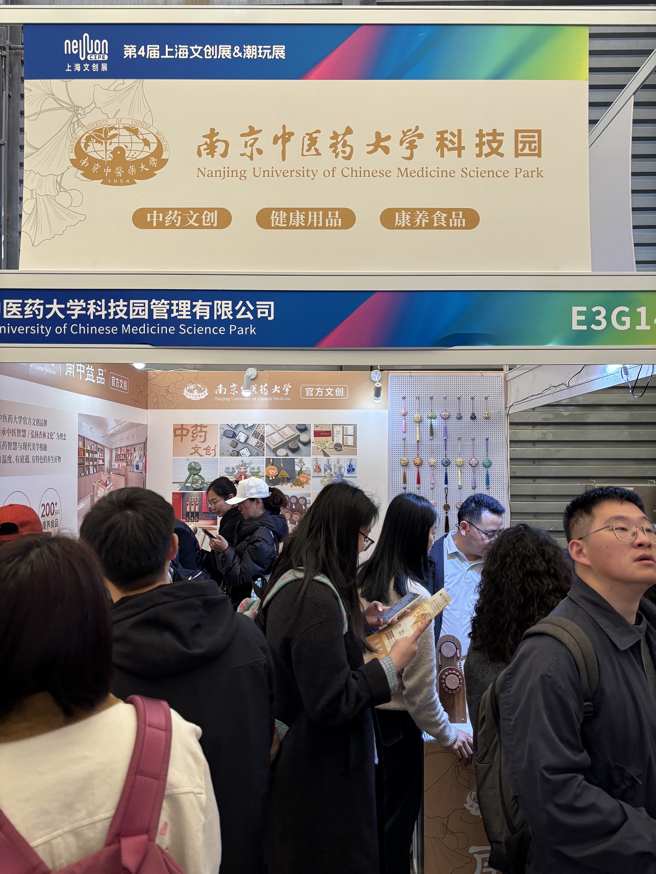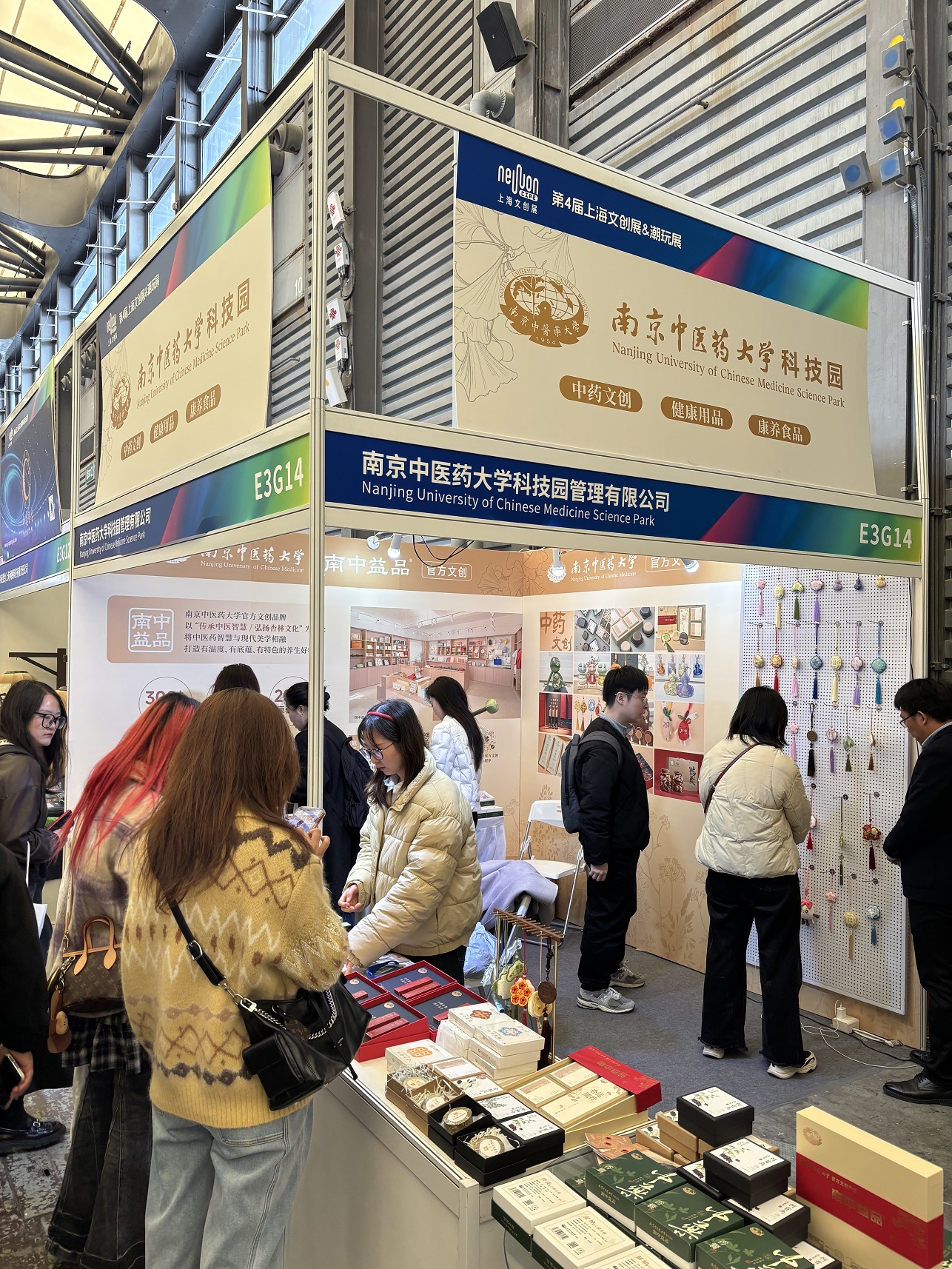 3月12日至14日,2026年第四届上海文创展在新国际博览中心举行,本届展会吸引超过3.5万名观众,展出面积约2.4万平方米,参展企业超过500家。南京中医药大学科技园管理有限公司首次参展,凭借自主设计开发的香囊、手工皂、合香珠、中药养生锤、固体香膏等系列中医药文创产品,在展会上大放异彩。